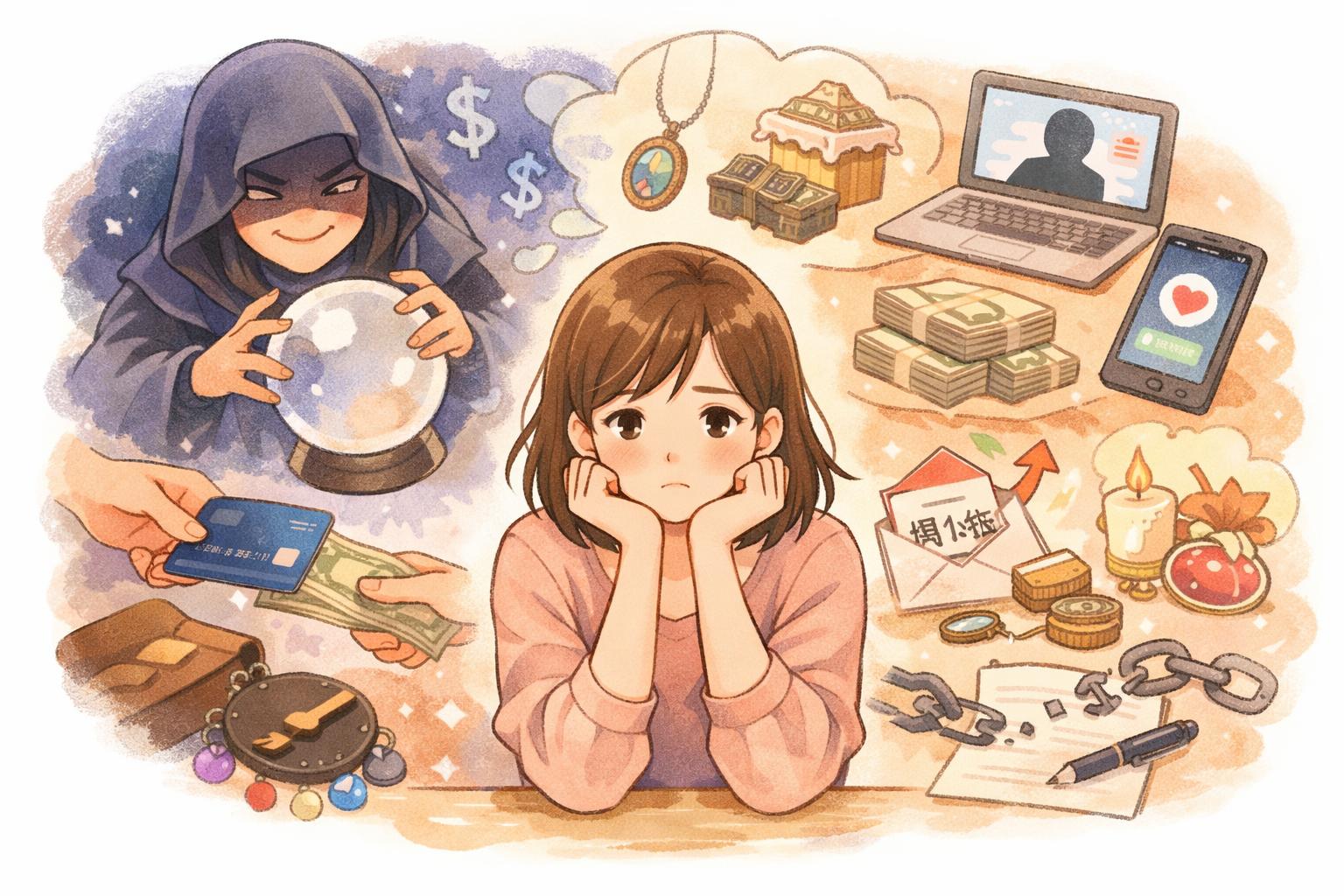 「占い詐欺」による被害が急増し、その手口は年々巧妙化しています。不安な心につけ込み、無料占いを装って個人情報を搾取したり、霊感商法や高額な開運グッズの購入、継続的な課金を誘導する悪質なケースが後を絶ちません。なぜ人は占い詐欺に騙されてしまうのか、その心理的背景と巧妙な手口、そして解約困難な仕組みまでを徹底解説。この記事では、弁護士監修のもと、あなたが占い詐欺に遭わないための最終防衛策を伝授します。怪しい占いを見抜くチェックポイントから、もし被害に遭ってしまった場合の冷静な対処法、契約解除や返金請求の可能性、そして国民生活センターや警察、法テラス、弁護士事務所といった信頼できる相談窓口リストまでを網羅的にご紹介。正しい知識と適切な行動が、あなた自身や大切な人を占い詐欺の魔の手から守り、もしもの時も速やかに解決へ導くための具体的な道筋となるでしょう。